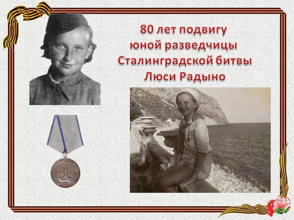 5 сентября 1942 года - юная разведчица Сталинграда Люся Радыно награждена медалью «За отвагу»