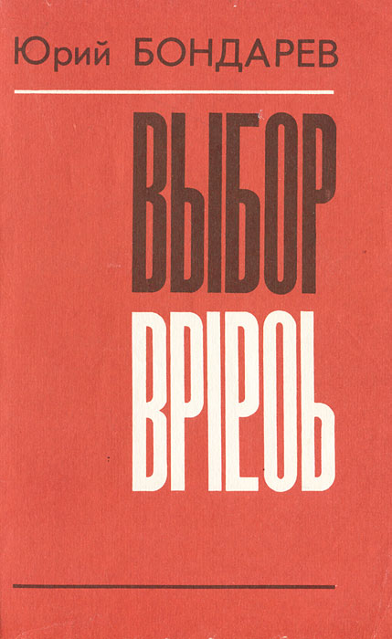 Впервые роман «Выбор» был опубликован в журнале «Наш современник» за 1980 год. В «Выборе», как и во всех своих романах, Бондарев предстает неповторимым художником слова. Замоскорецкие пейзажи с вековыми липами, тополиными метелями, бушевавшими в конце июня, травянистыми двориками и запахами хлеба из булочной. Или узкие улочки в осенней Венеции, полукруглые и зыбкие тени мостиков через невидимые в тумане каналы. А какими живыми подробностями наполнены картины Москвы в октябре 1941 года, в этот критический момент в истории страны, когда герои романа, вчерашние школьники Васильев и Рамзин, возвращаются туда из-под Можайска, где рыли противотанковые рвы вместе с другими школьниками и студентами. Семидесятые годы XX века. Признанный художник Владимир Васильев провожает засидевшихся гостей. За внешним благополучием в семье чувствуется тревога и смятение, жена Мария с трудом скрывает раздражение. Васильев любит жену, и такая холодность вызывает у него ревность. Оказывается, несколько месяцев назад, в Венеции проходила выставка картин Васильева, и там произошла встреча с другом их юности Ильей Рамзиным, которого они считали погибшим. От него не было вестей больше тридцати лет. В довоенное время Маша Сергеева была влюблена в него. Илья был смелым, самоуверенным, не знавшим ни в чем сомнений. Васильев с высоты своего возраста так думает об их дружбе: «Мы были совершенно разные в чем-то, я во многом чувствовал его превосходство…». А Илья говорит Васильеву: «Я всегда преклонялся перед твоей чистотой и совестью… с детства!..». На войне, прорываясь из окружения, им пришлось оставить артиллерийские орудия. Командир полка Воротюк дает невыполнимый приказ вернуть орудия, хотя сделать это практически невозможно. Посылает Рамзина и его солдат на верную гибель. Обстоятельства сложились для Ильи роковым образом. Илья попадает в плен, не помышляя об измене и предательстве. Все эти годы он жил сначала в Германии, потом в Италии. Спустя несколько месяцев после встречи в Венеции, Илья приезжает в Москву. Он хочет увидеться с матерью, надеется на ее прощение. Но встреча эта оказалась холодной, у матери не нашлось ни чувства сострадания к сыну, ни всепобеждающей материнской любви. Обида возобладала над всеми ее чувствами. Разочаровавшийся во всем, измученный жизнью, Илья делает свой трагический выбор, покончив жизнь самоубийством. Это роман о жизни и поисках ее смысла; о выборе, который каждый человек делает сам, или за него делает судьба; о войне; о любви; о роли искусства, которое призвано «сохранять человеческое в человеке», о напряженной душевной работе творческой личности. В конце романа, несмотря на все тревоги и трагедии, которым он насыщен, звучит жизнеутверждающая тема, устанавливающая один смысл, один выбор как «великий и вечный» – любовь. Название романа «Игра», как и других, имеет аллегорический смысл. Игра в романе понимается как сама жизнь: «игра жизни» и, в то же время, как нечто противоположное жизни и ее естественному течению: «игра с жизнью», «игра в жизнь» (умирая, Крымов вспоминает слова Гричмара о том, что жизнь подменяют игрой в жизнь, «Весь мир играет в дешевую красоту». Знаменитый кинорежиссер Вячеслав Крымов приглашает Ирину Скворцову на главную роль в своем новом фильме. Она была талантливой начинающей балериной, но получила травму.