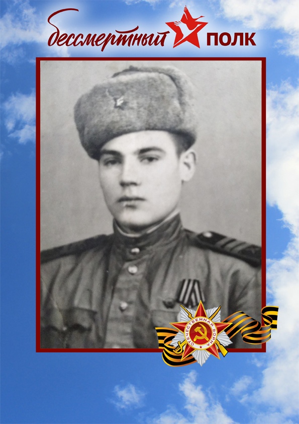 Рядовой, 13 мая 1944 года принял военную присягу при 54 отд. зенитной арт бригаде. Принимал участие в боях и походах в Великой Отечественной Войне с мая 1944 г. по май 1945 г. в составе: 54 отд. зенитная арт. бригада – оруд. номер 37 мм. пушек. 1385 зенит. арт. Идринский полк – шофер.